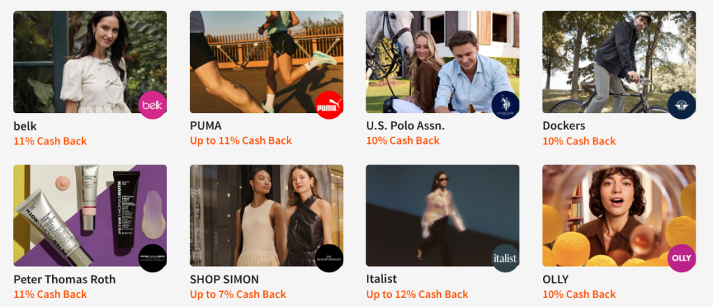 Belk offers 11% cash back on everything from clothing to home goods and beauty products. Puma offers up to 11% cash back on its athletic wear and sneakers, which blend style with performance. U.S. Polo Assn. gives you 10% cash back on classic American fashion for the entire family.