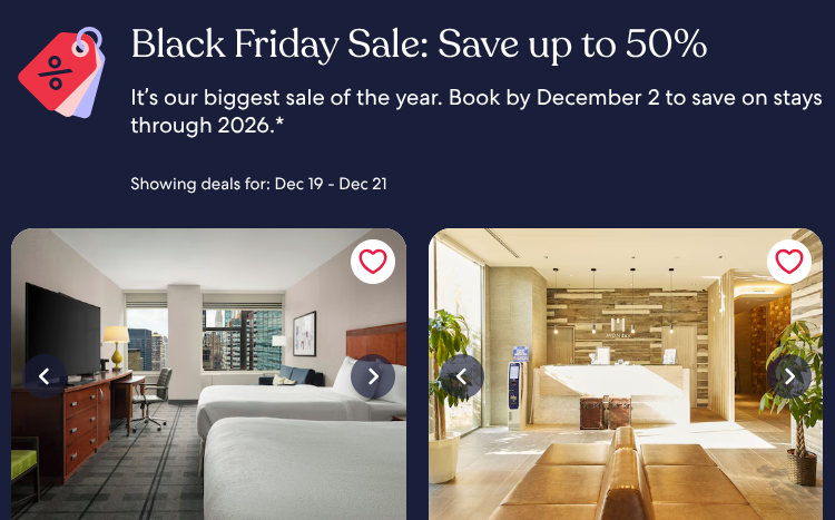 Hotels.com doesn’t mess around with up to 4% cash back through RebatesMe. But here’s where it gets juicy. Their Black Friday sale extends through Cyber Monday, with savings of up to 50% on stays through 2026 when you book by December 2. Plus, their loyalty program gives you one free night after every ten stays. So you’re earning cash back while racing toward free accommodations and scoring half-off rates. Talk about a triple win.