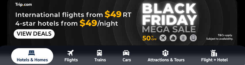 Trip.com is the heavyweight champion with up to 7% cash back on bookings through RebatesMe. Their Black Friday Mega Sale is absolute fire with international round-trip flights starting at just $49 and hotel deals up to 70% off. You’ll find 4-star hotels from $49 per night, plus daily BOGO offers on attraction tickets. In fact, they’re offering 50% off Disneyland and Universal Studios tickets, half-price train tickets across Europe and Asia, and 50% off car rentals. Savvy travelers use it for Tokyo adventures and Bangkok escapes where other platforms can’t compete.
